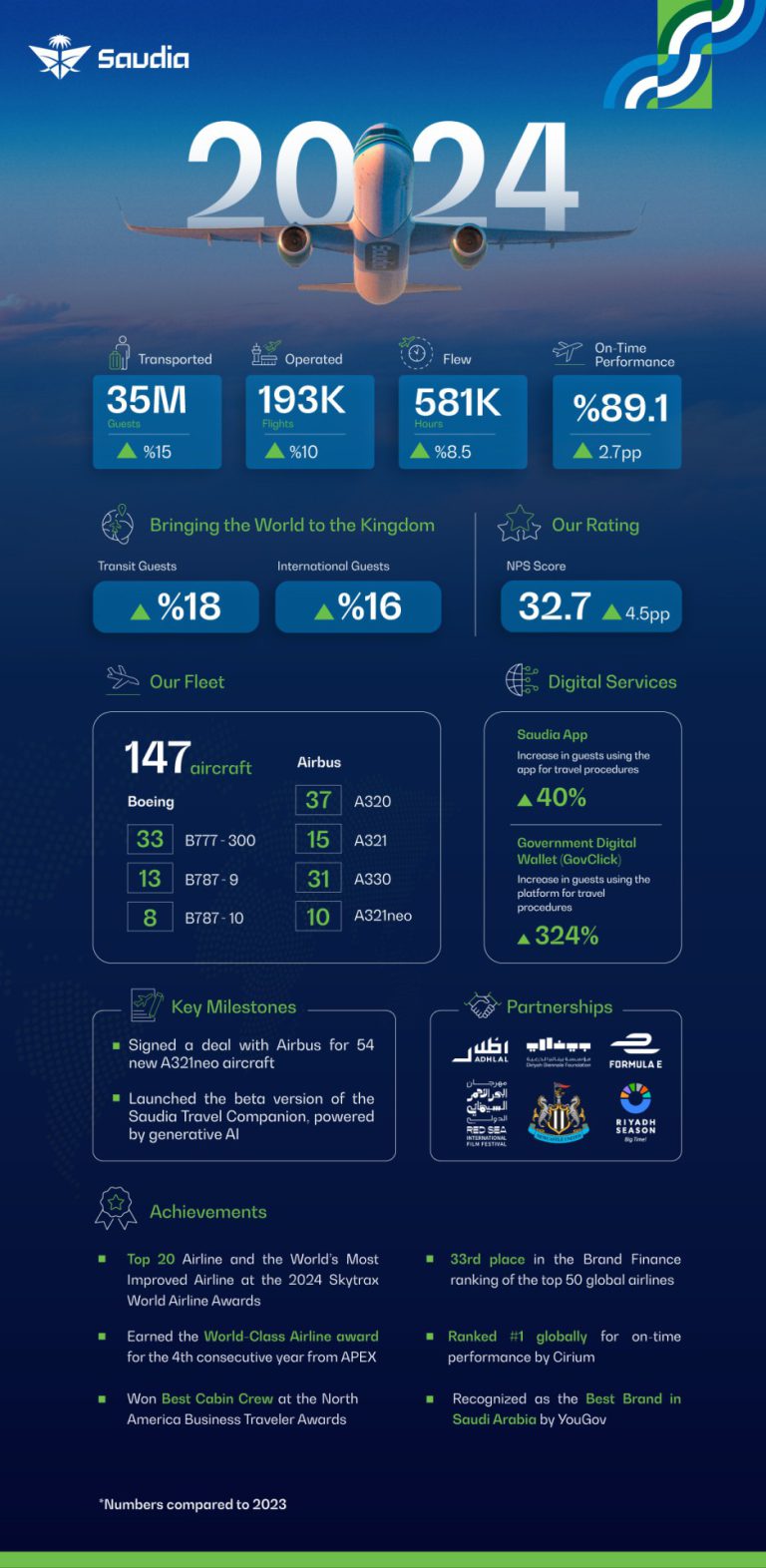 Saudia Achieves Record Growth in 2024, Strengthens Vision 2030 Goals
