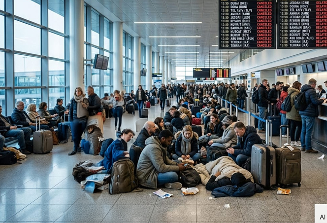 Airspace over countries including the United Arab Emirates, Qatar, Bahrain, Saudi Arabia, Israel and Kuwait remained closed, forcing widespread suspension of flights and diversions through alternative corridors, according to aviation tracking data. Airports in Dubai, Abu Dhabi and Doha — typically among the world’s busiest international hubs — have experienced prolonged stoppages and operational uncertainty. More than 3,400 flights were cancelled on Sunday across seven Gulf airports alone, while global delays numbered in the tens of thousands.