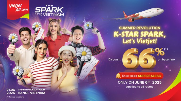 Vietjet, Vietnam’s leading low-cost airline, has announced an exciting one-day-only 6.6 flash sale, offering a massive 66% discount on 66,666…